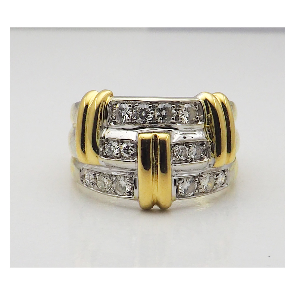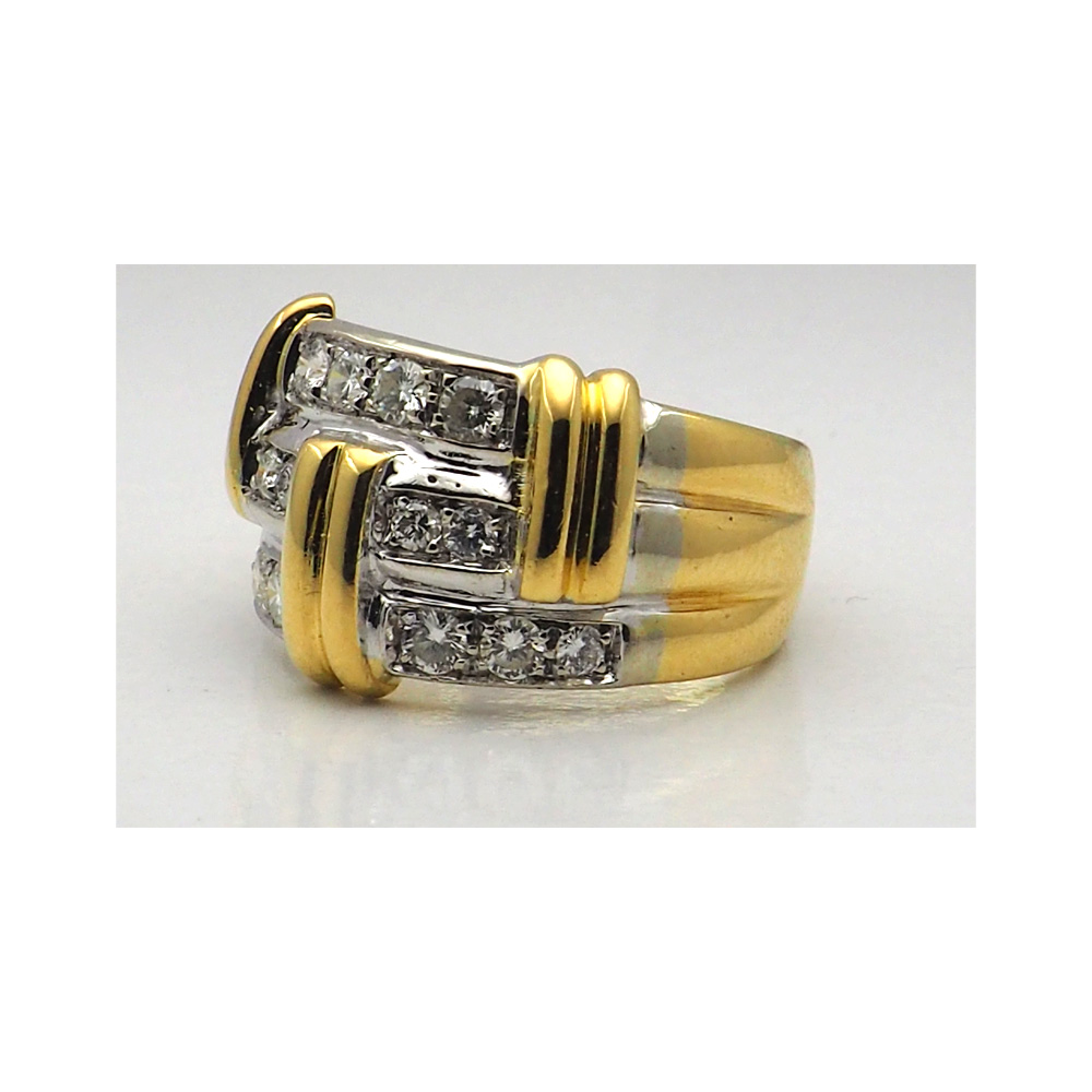 Anello in oro giallo e bianco titolo 750 con Diamanti taglio Brillante d’epoca.