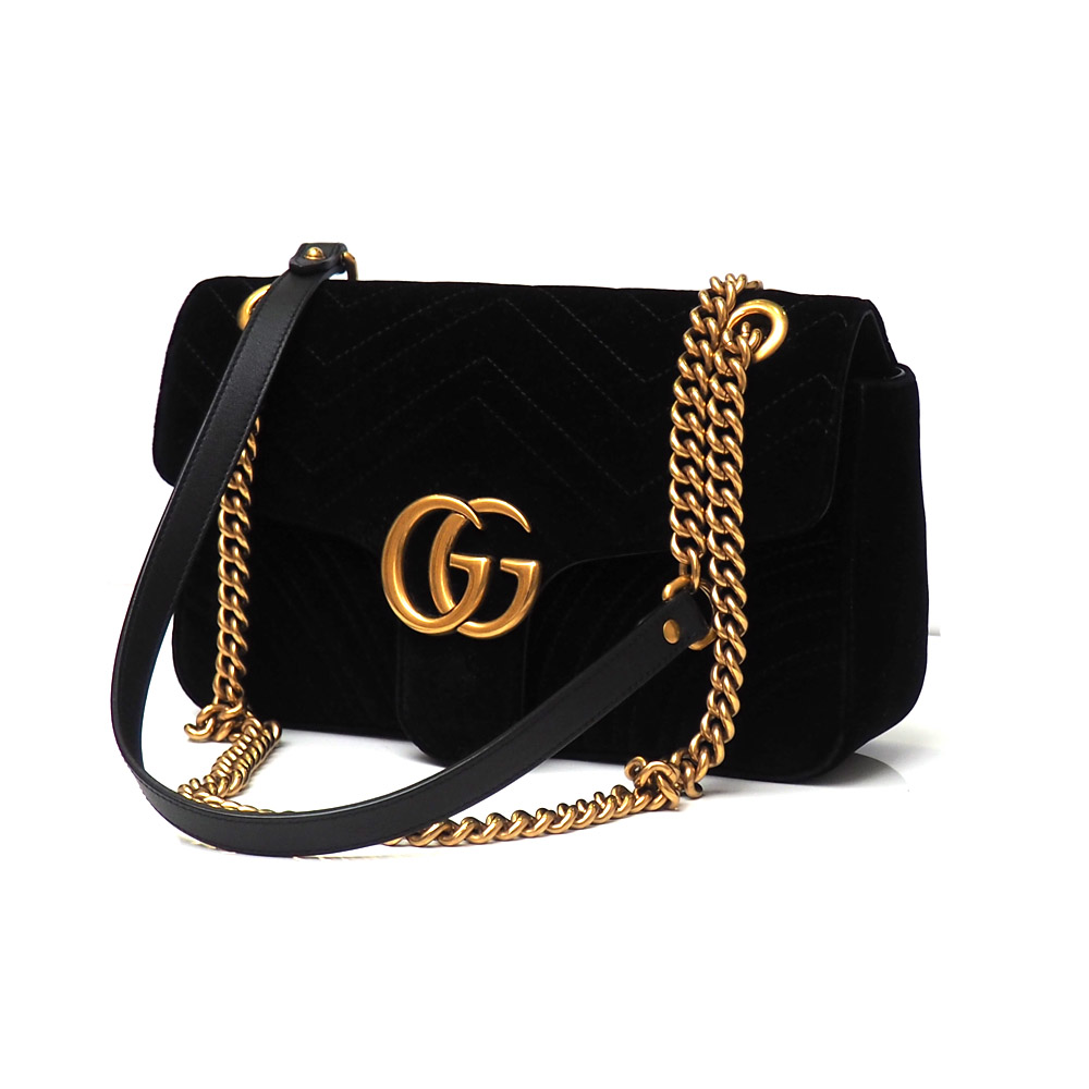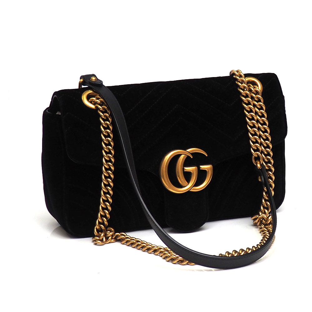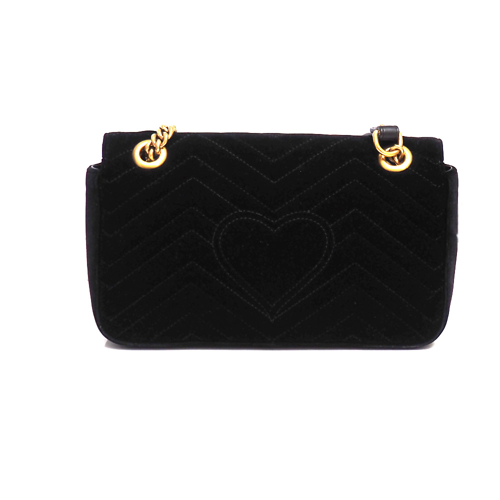 Borsa a tracolla originale Gucci GG Marmont in velluto nero, misura media.