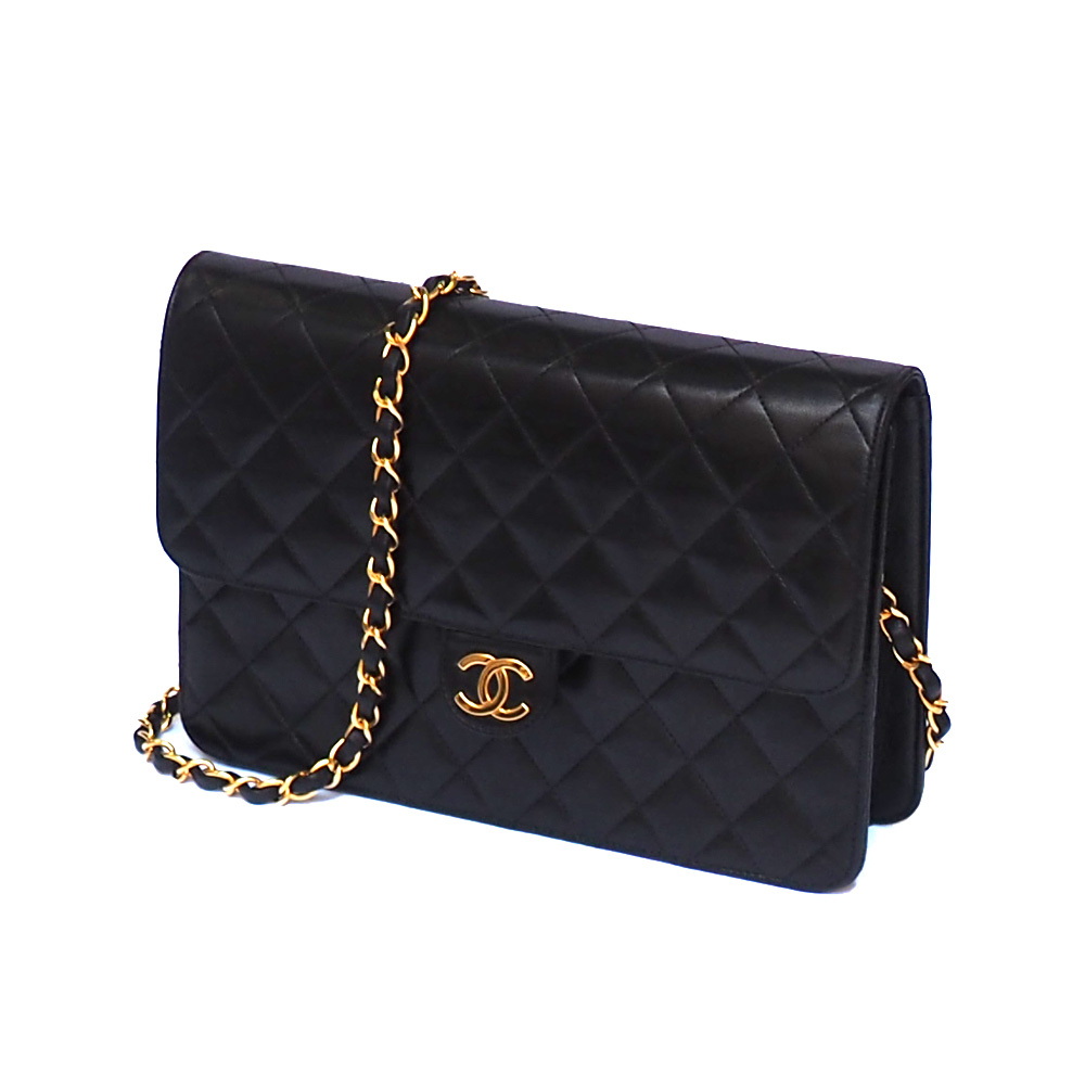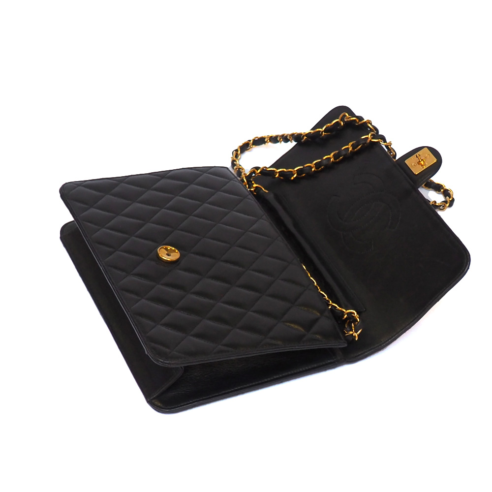 Borsa originale Chanel Timeless anni 90 di colore nero con tracolla, hardware color oro.
