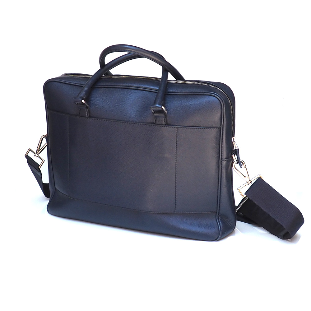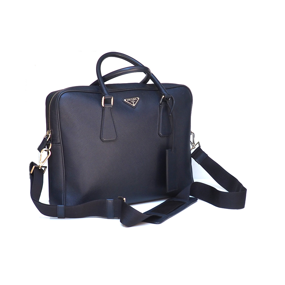 Borsa a cartella da lavoro originale Prada con doppio manico in pelle e una tracolla regolabile e rimovibile, logo triangolo in metallo smaltato sulla parte frontale e un porta nome rimovibile coordinato. Suddivisa in scomparti multipli con tasche interne con zip .