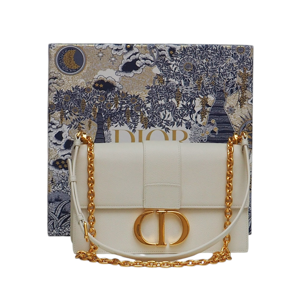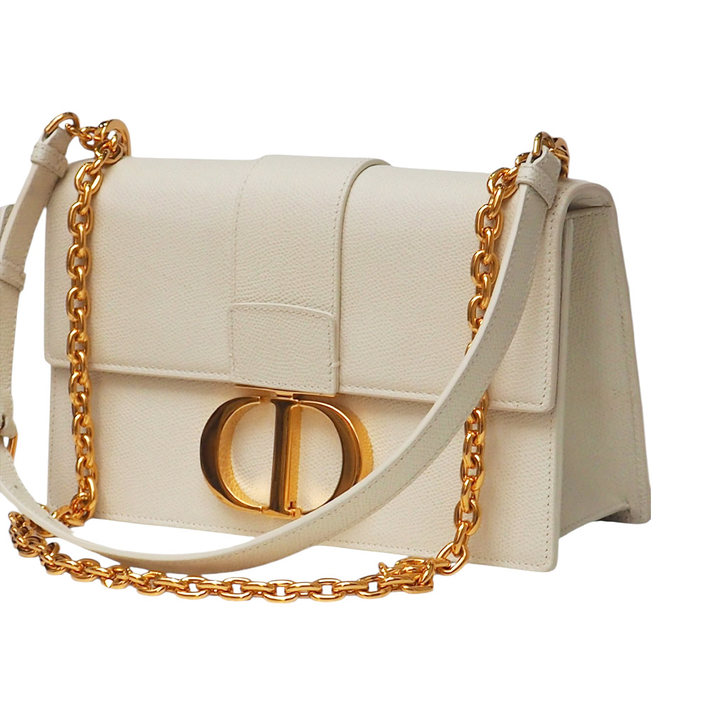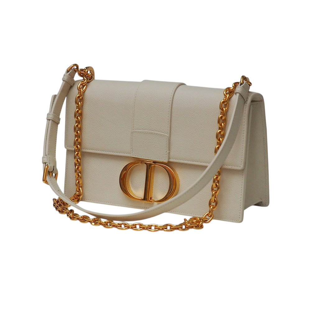 Borsa originale Dior 30 Montaigne East-West con catena in pelle di vitello color latte.