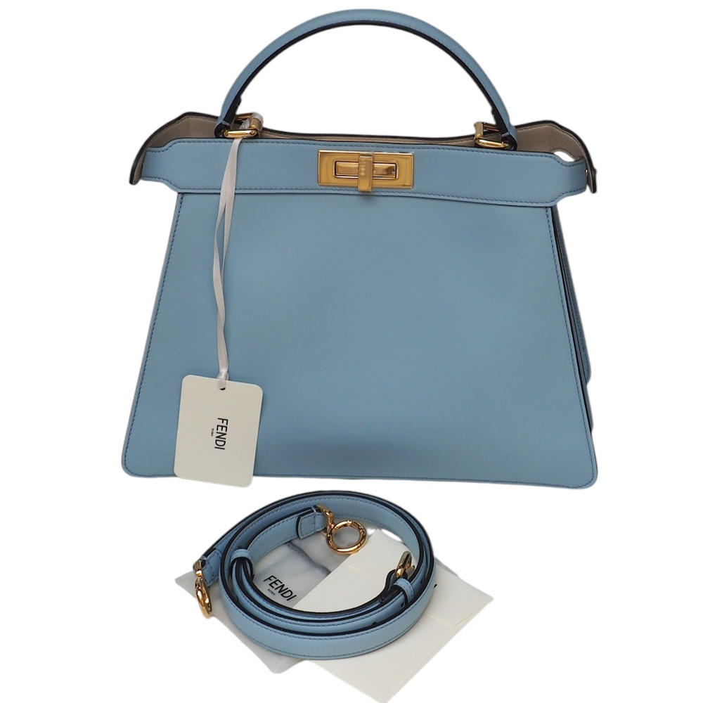 Icona senza tempo, la Peekaboo realizzata in pelle di vitello di colore azzurro baby dalla texture setosa.