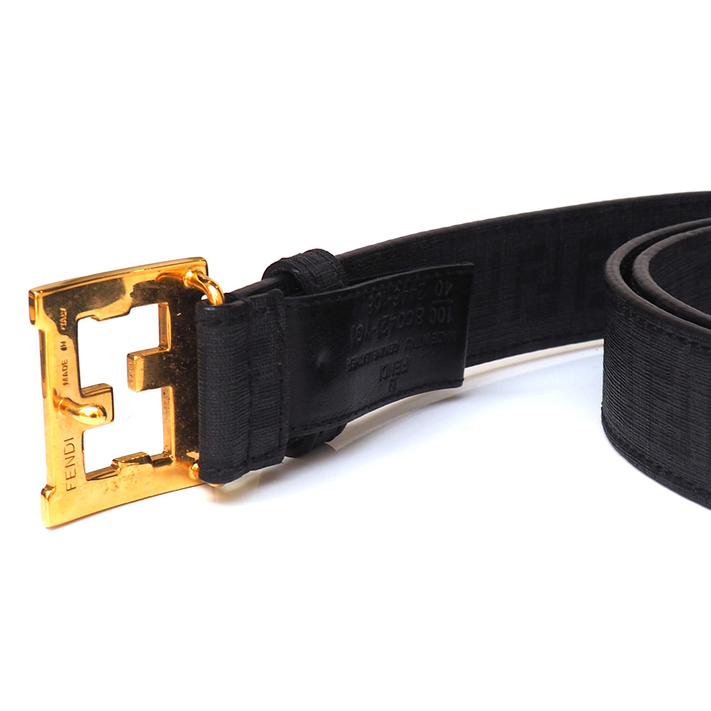 Cintura Fendi di colore antracite con stampa FF e Fibbia color oro.