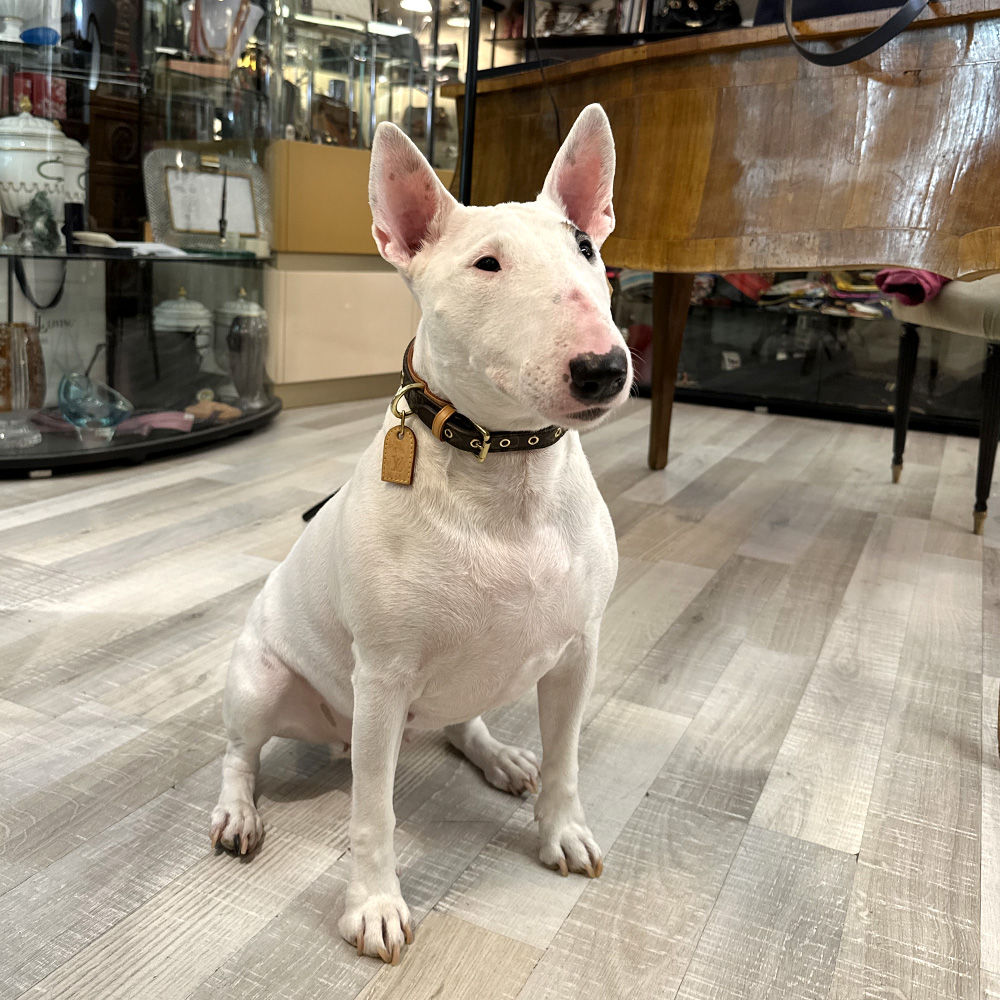 La modella in foto di nome Tamy (Bull Terrier Miniature) ha una circonferenza di collo di 38/39 cm.