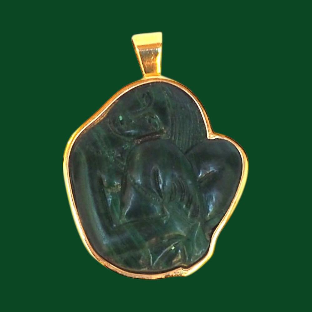 Scultura in malachite raffigurante una figura femminile su oro giallo 18 Kt.