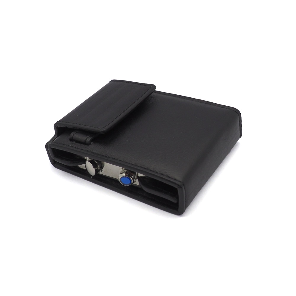 Movimento al quarzo, con custodia protettiva di pelle nera e custodia rigida Cartier.